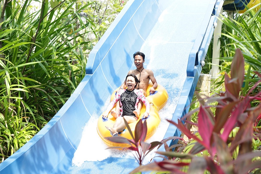 樂園目前配備12套大型游樂設(shè)施,近百條戲水滑道。其中包括垂直距離高達(dá)28米、下滑角度70°的國內(nèi)頂尖心跳滑道——尖峰時速;長達(dá)1350米、詮釋雨林故事的休閑漂流項(xiàng)目——雨林漂流;面積16000平方米、海嘯浪可高達(dá)3米的造浪池項(xiàng)目——颶風(fēng)海嘯及歡樂海岸;被稱之為“亞洲奇跡“的長280米的超長水上過山車——水上飛龍。