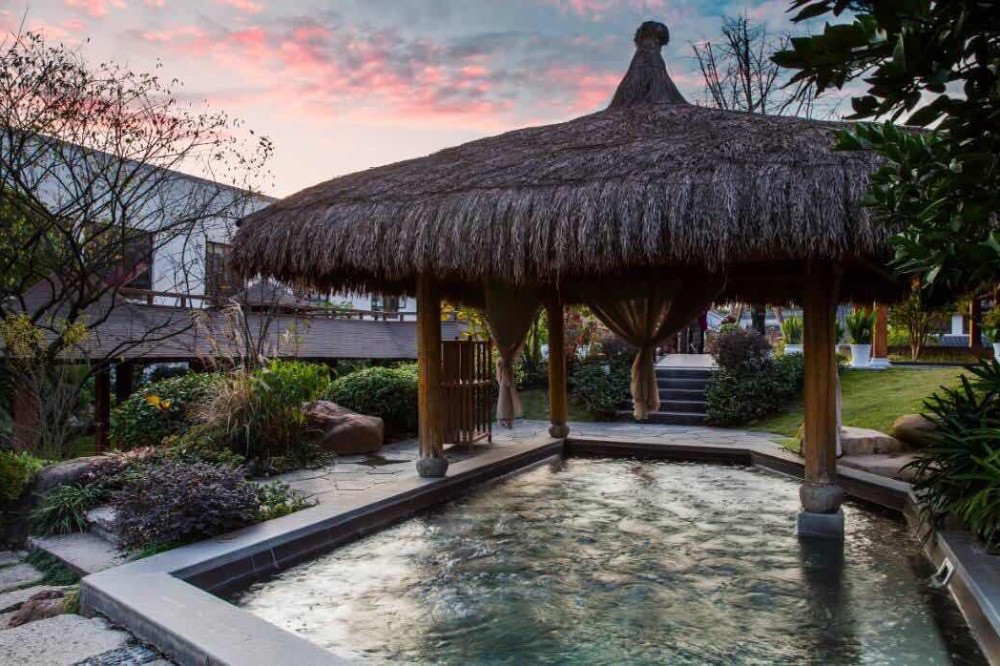 建德航空小鎮(zhèn)溫泉地?zé)峋?/span>1300米,泉眼發(fā)現(xiàn)于1986年,2012年正式對外開放,整個溫泉度假中心目前有50多個室內(nèi)外特色泡池,除了泡池,還有VIP包廂,可滿足高端用戶泡私湯的需求。