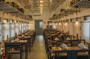 東方紅火車主題酒店由3列27節(jié)綠皮火車車廂組成,來自長春、沈陽等北方城市的綠皮火車經(jīng)過著名設(shè)計師的改造已經(jīng)成了國內(nèi)為數(shù)不多的火車主題酒店,一共73間火車客房和1個火車餐廳。酒店以橫鋼50年代金千鐵路舊址作為切入點,利用火車枕木鋪設(shè)人行游步道,結(jié)合溫泉,形成了真正的VIP溫泉客房。走進(jìn)綠皮火車,你會發(fā)現(xiàn)原先的車廂已經(jīng)被很好地設(shè)計成了宜居的客房,書桌、衛(wèi)生間、電視、暖氣一應(yīng)俱全,還能在墻上看到年代感的背包/水壺/帽子的裝飾。