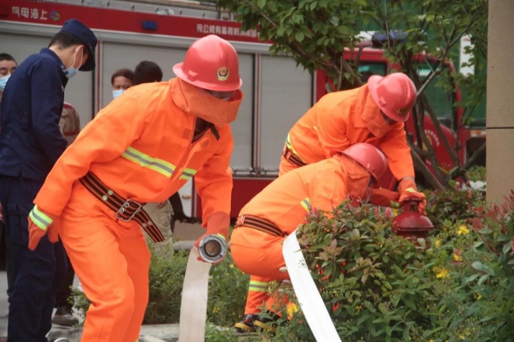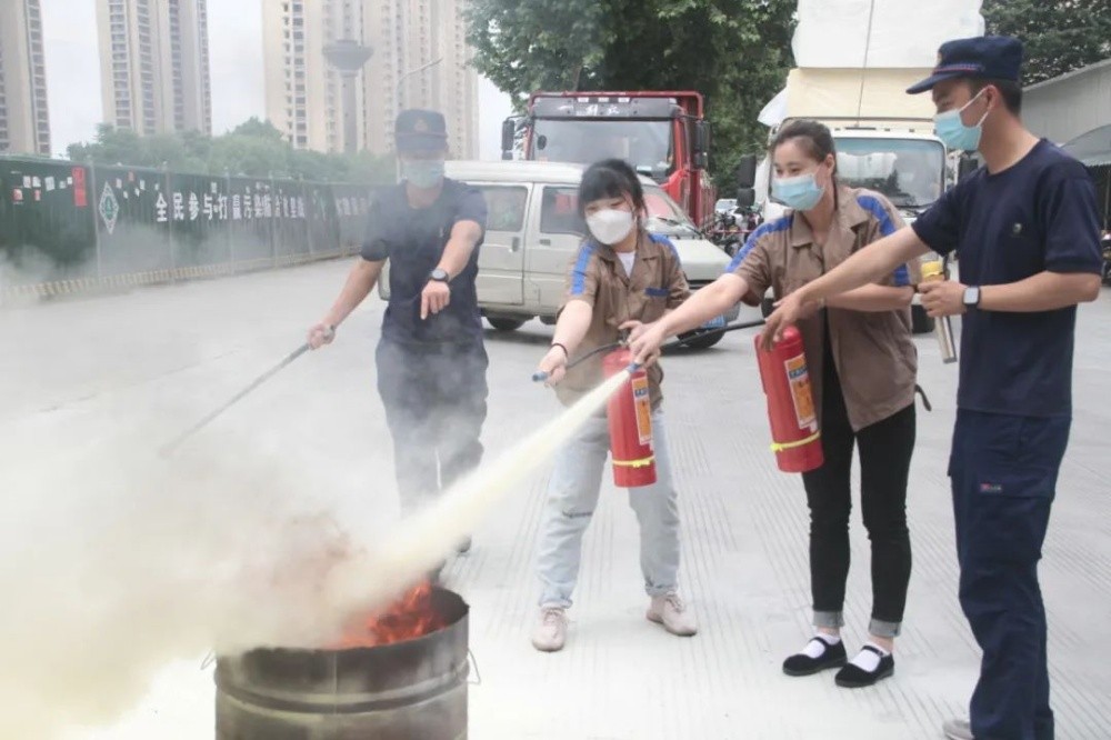 任何人員發(fā)現(xiàn)火災后應立刻呼叫附近員工參與滅火救援,在一分鐘內(nèi)組成第一滅火力量。在鎮(zhèn)消防隊的指導下,通過演練干粉滅火器滅火、推車滅火器、水帶連接消火栓出水演練,使員工掌握發(fā)生火災后正確的滅火力量調(diào)配和撲救步驟。