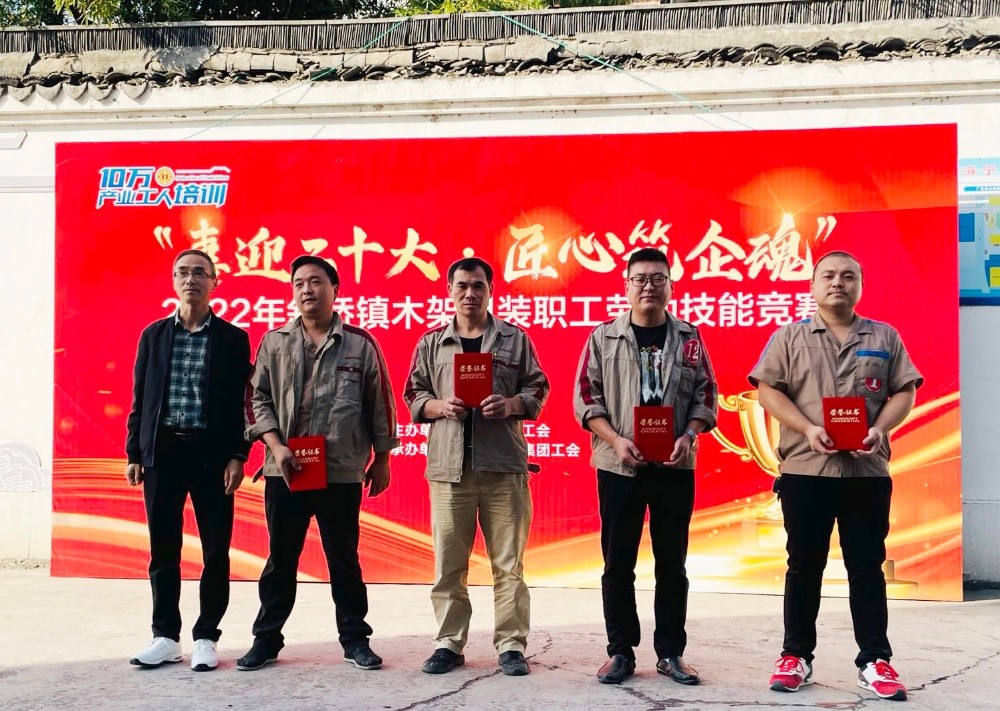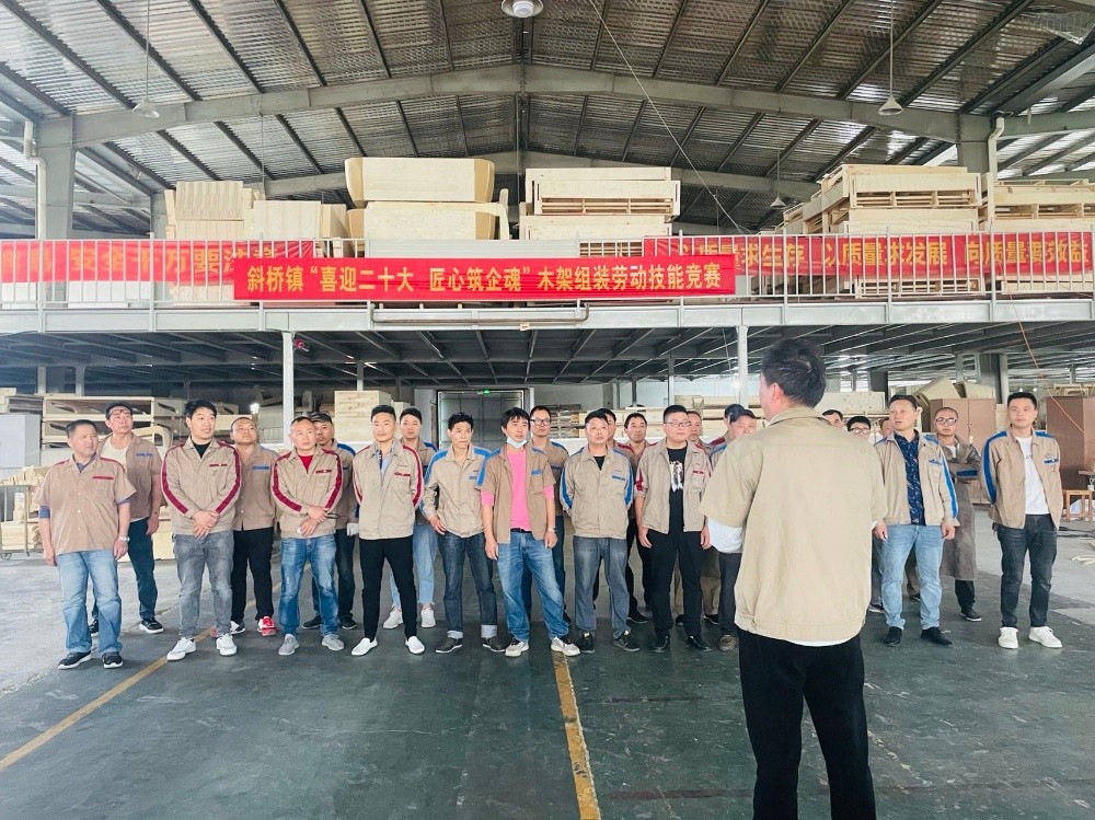 為提升職工勞動技能水平,形成創(chuàng)先爭優(yōu)、比學(xué)趕超的競爭氛圍,一場以“喜迎二十大 匠心筑企魂”為主題的2022年斜橋鎮(zhèn)木架組裝勞動技能競賽在恒森公司組裝車間拉開戰(zhàn)幕,來自組裝一車間、二車間和打樣車間的26名技能型員工報名參賽。