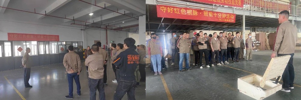 近段時(shí)間以來,卡森集團(tuán)工會(huì)根據(jù)市、鎮(zhèn)總工會(huì)“守好紅色根脈·班前十分鐘活動(dòng)”的工作部署,在集團(tuán)黨委的組織帶領(lǐng)下,號(hào)召各子公司全面興起“班前十分鐘”活動(dòng),為把黨的思想精神、奮斗目標(biāo)和方針政策傳達(dá)貫徹到基層員工心中,鞏固夯實(shí)共同富裕的思想基礎(chǔ),奮力打造員工精神共富的品質(zhì)企業(yè)。