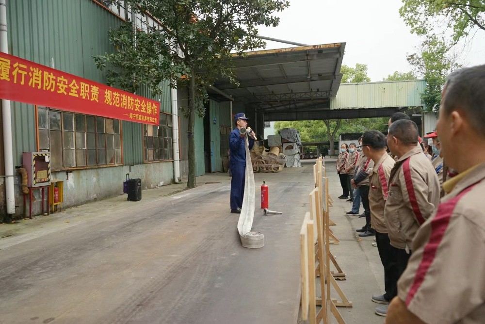 專職消防員以近期多地發(fā)生的典型火災(zāi)事故案例為警示,結(jié)合企業(yè)實際和特點,采取“理論+示范+實操”的模式,深入淺出地講解了火災(zāi)的危險隱患和防范措施。并現(xiàn)場示范了滅火器、消火栓的正確使用方法。