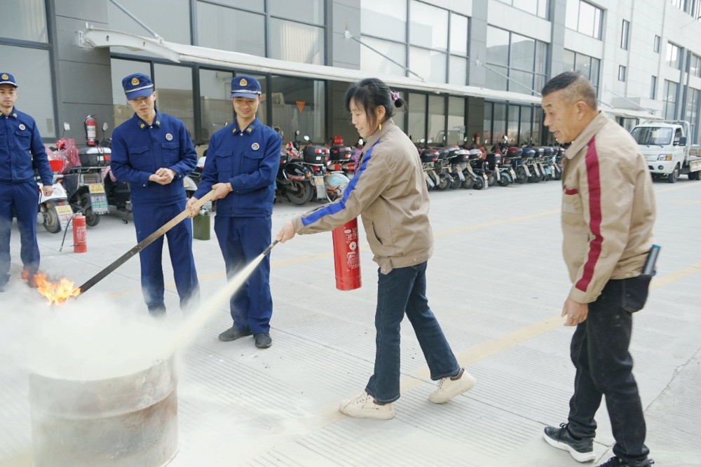 員工代表進(jìn)行滅員工代表進(jìn)行滅火器使用實(shí)操,尤其是對新近入職員工,要求每人必須當(dāng)場操作,確保人人會用滅火器。