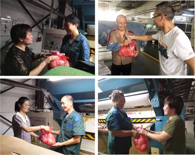 當天下午,集團黨委書記、副總裁周小紅帶領工團婦群團組織負責人一起冒著酷暑深入車間走訪一線,詳細了解各家子公司生產情況,關心工人勞動強度,詢問了職工們的作息時間和生活狀況,將黃桃、毛巾等慰問品一一送到高溫作業(yè)的職工手中。看到有的職工汗水浸濕了衣衫,有的發(fā)尖淋下了水滴,周書記對大家堅守崗位戰(zhàn)高溫、辛苦勞動促發(fā)展的精神表示贊揚,并反復叮囑 “天氣熱,溫度高,工作辛苦,大家一定要注意自我防護,防止高溫中暑,保重好身體”,希望大家在應對高溫挑戰(zhàn)的同時,注意生產安全,確保企業(yè)各項工作有序開展。