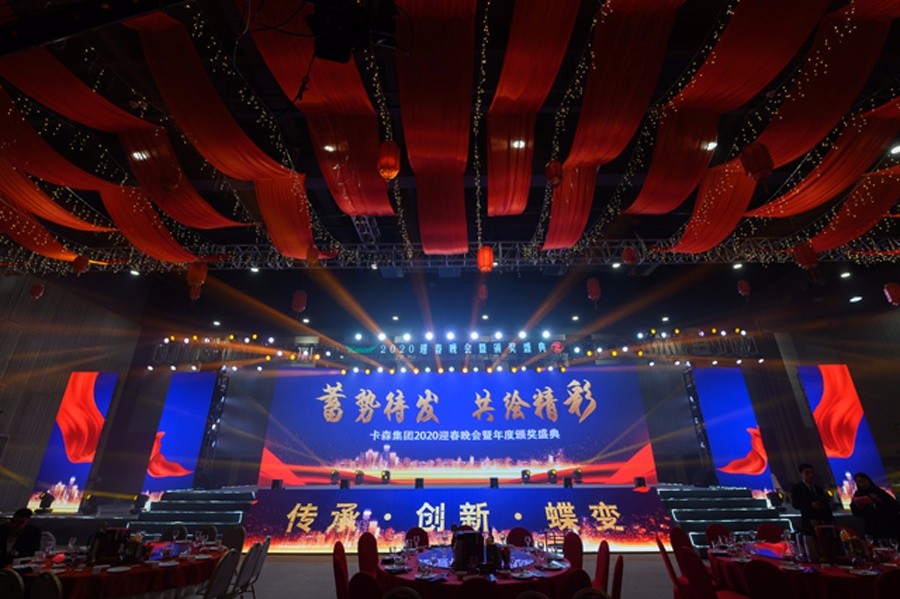 1月11日,海寧最大規(guī)模的企業(yè)年會——“蓄勢待發(fā) 共繪精彩”卡森集團2020迎春晚會暨年度頒獎盛典在隆聚宴會(海寧會展店)隆重上演,集團總部各部門、旗下子公司班組長以上及優(yōu)秀員工代表等約1600人歡聚一堂,共享企業(yè)豐收喜悅的榮光。年會以3D人屏互動視頻秀舞蹈——《太極光影》拉開序幕,科技感十足,充滿想象力,并以“卡森艦”“一帶一路”揚帆遠航寓意企業(yè)開創(chuàng)美好未來。