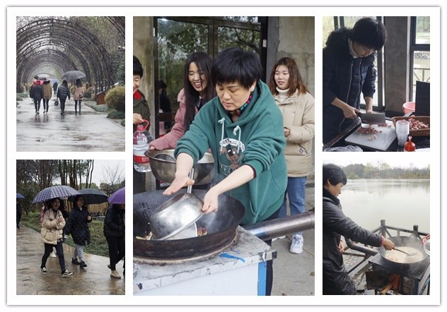 種完了多肉,大伙兒一起來(lái)到風(fēng)景優(yōu)美的鳳凰湖邊,開(kāi)始了歡樂(lè)野炊。盡管天氣陰冷,野炊爐具均在室外,但是姐妹們還是一下子投入其中,淘米、洗菜、生火、做飯,忙得不亦樂(lè)乎。野炊中大家密切配合,輪番上場(chǎng),不一會(huì)兒功夫,4鍋香噴噴的“野飯”和一鍋暖暖的雞湯水餃便端上了餐桌。“好吃,好吃……”“咸淡正好,這是誰(shuí)燒的呀?這么厲害!”“香……”離開(kāi)工作舞臺(tái),個(gè)個(gè)都是居家好手,大家相互說(shuō)笑著,品味著這份不同尋常的別樣午餐。