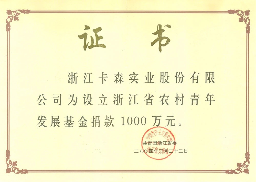 ▲ 2007年,海寧市創(chuàng)建慈善基金,集團(tuán)設(shè)立卡森留本冠名基金1500萬元,至今累計(jì)捐贈(zèng)545萬元,用于助困、助學(xué)、助教、助殘;
